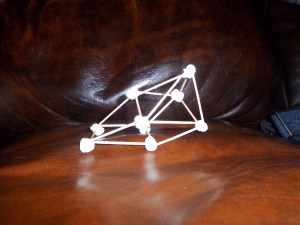 Kayla came home on Monday with a house she had made from toothpicks and marshmallows. I thought it was really cute, but a defect in the construction materials had her pretty disgusted with it. The following is a photographic portrait of why she didn’t like her house: