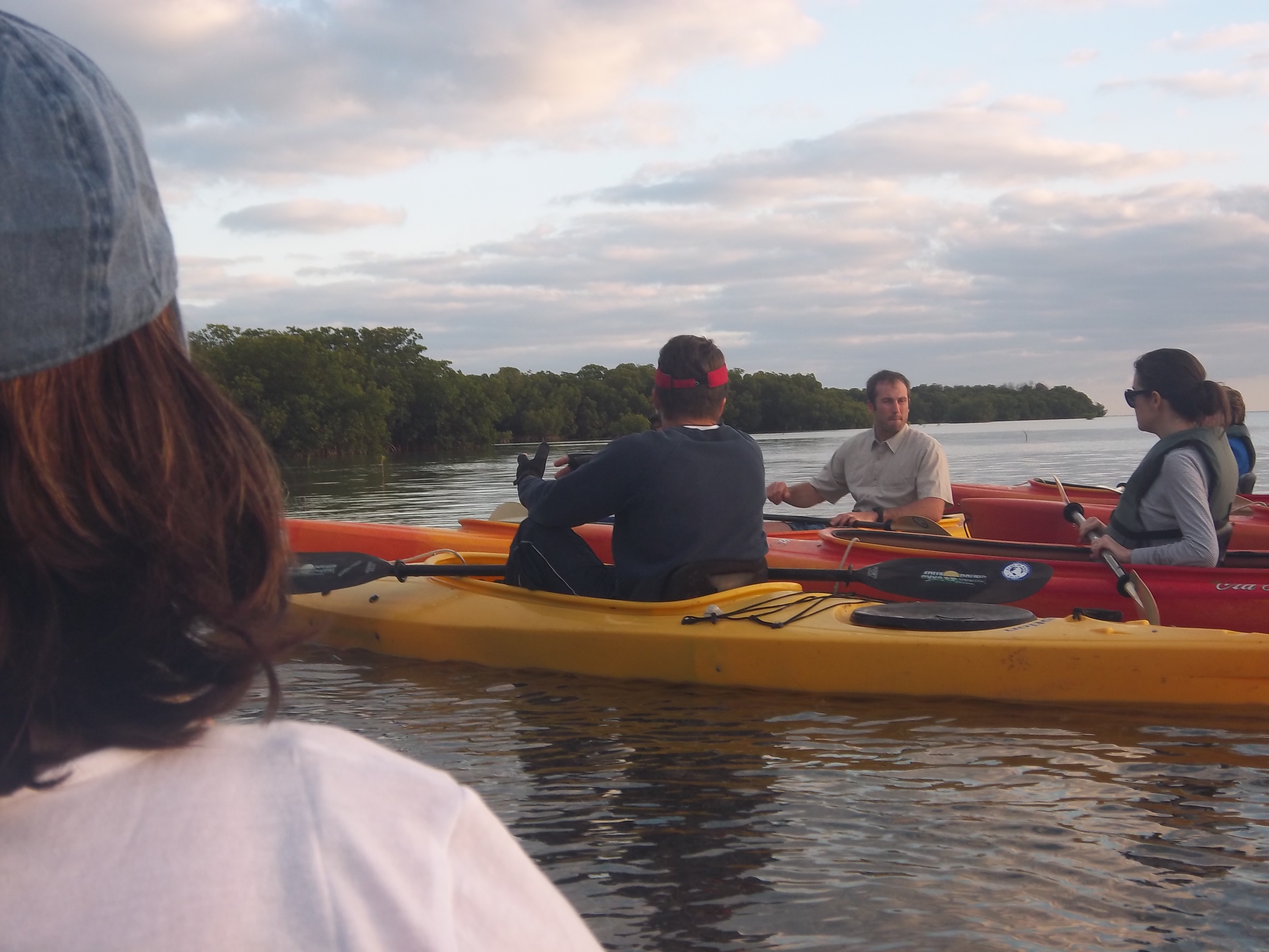 We went through several mangrove channels. They are exceptionally narrow and twisty and have a spooky kind of beauty all their own. This was especially true at night. I was very grateful that our guide neglected to disclose the fact that there are two types of snakes that can live in mangroves until after we had finished traveling through the mangrove channels! Making it through the mangrove channel in a tandem kayak does require some team work on the part of the two kayakers in the boat, but Mark and I managed it.