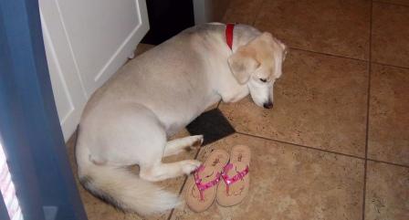 Mandy with Kayla’s Flip-Flops ready to chew!