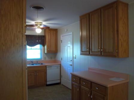 Here is one view of the kitchen. While it is small, it has a lot of cupboard space for its size, as well as a full complement of kitchen appliances.