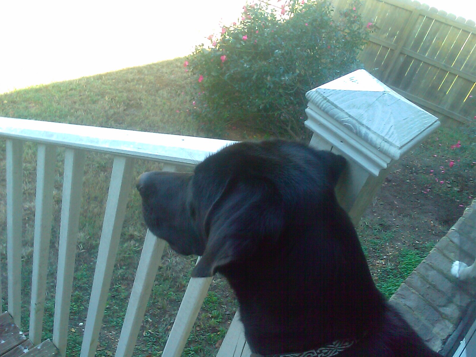I do know when they woke up for the first time on Wednesday – at 4:20 a.m., when an unexpected thunderstorm came through.  All 90 pounds of Darwin sailed onto Mom’s bed, waking her up, with another 55 pounds of Mandy approaching from the side, and Kayla coming out of her room, all of them announcing that the thunder had begun!  Mom said it was the funniest thing to have Darwin’s huge Great Dane frame with his lab face staring anxiously down at her as she woke up.