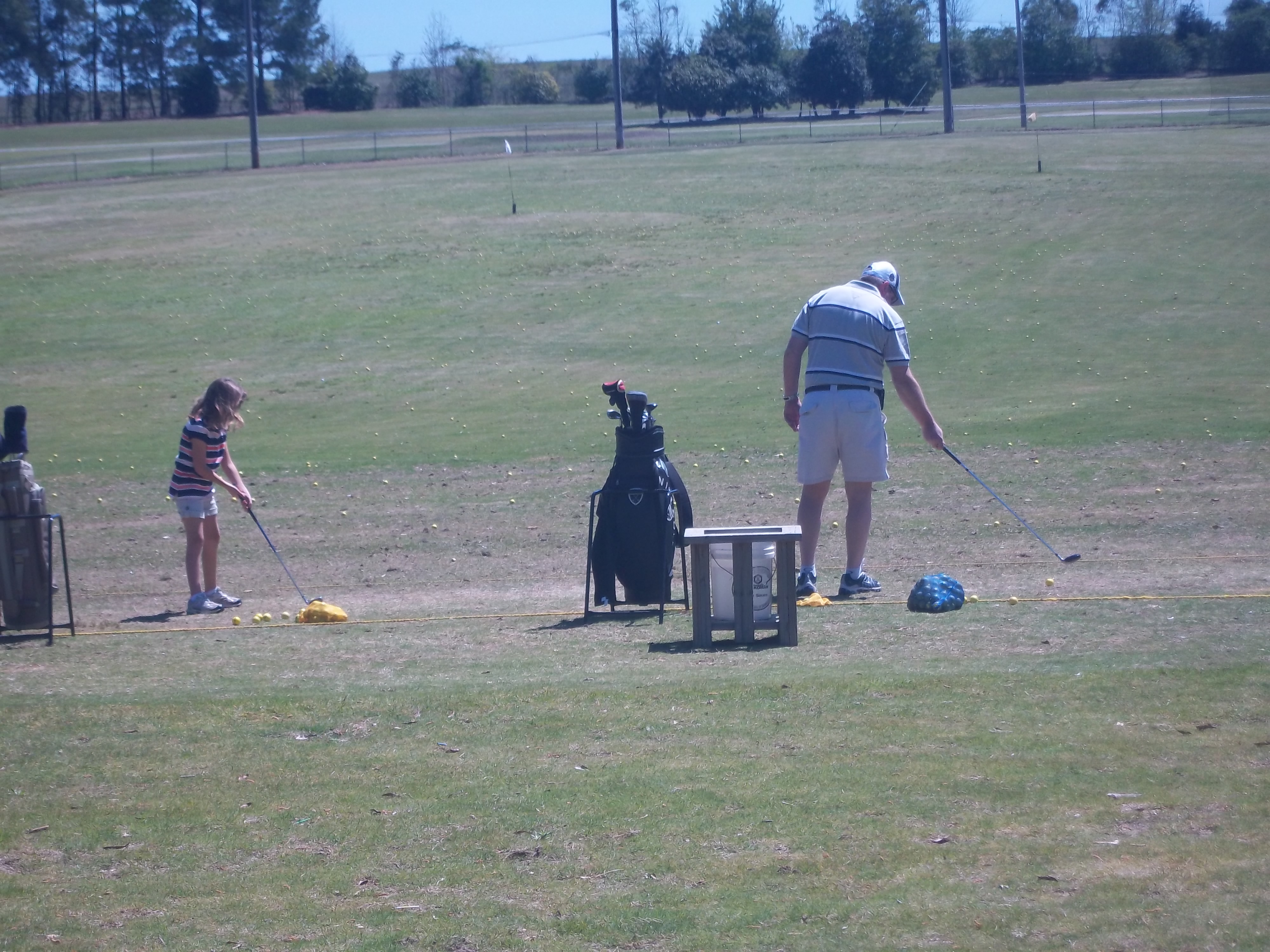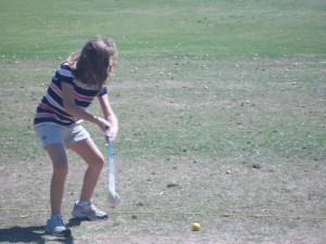 There are unique rules to driving range play.  The first is that you will never hit a really good shot when someone is looking.  Resign yourself to it.  I do hit maybe three or four decent shots out of the 20 to 40 golf balls available to me each session, but they are always when Mark and Kayla are looking the other way.  The second rule is one of proportions – the amount of time I will get to spend hacking…er, hitting… the ball decreases geometrically to the number of balls Kayla wants to hit.  She needs encouragement and unlike adults doesn’t understand when Mom and Dad don’t see the good shots that she hits.  The third rule at the driving range is that just at the moment you decide that this is a really stupid game, you will never get good at it and you might as well quit, you hit a truly beautiful shot that stupefies your senses back into the delusion that you will be playing better sometime soon.