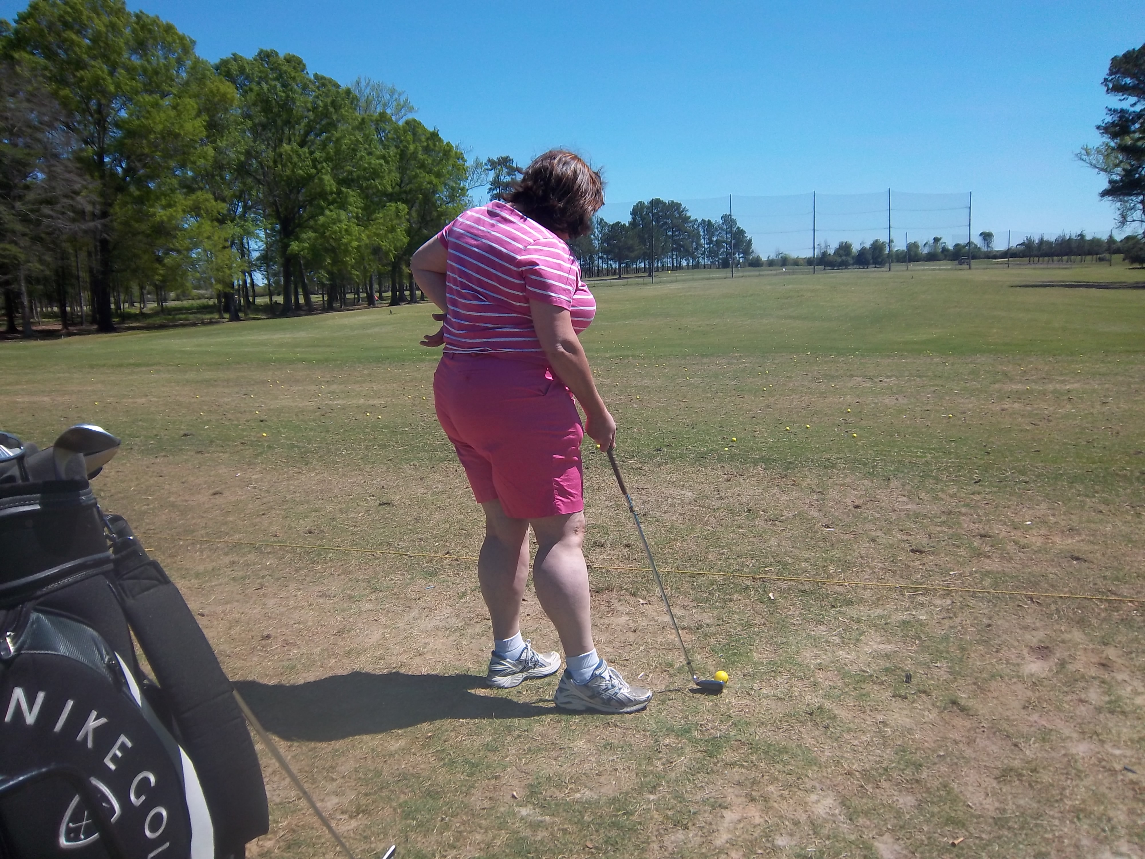 Our weather here was perfect, leading us to the second rite of spring.  (The first rite of spring is described in my March 23, 2011 post, “Spring!, Butterflies and Roosters.”)  The warm air and soft breezes, laden with pollen, begin to play tricks on the mind, and sudden images of me carrying a greatly enlarged metal typewriter stick, with a weird shaped mass of metal at the end of it that resembles a cross between a rectangle and an oval begin to dance through my overheated brain.  The sudden onslaught of ads for major tournaments such as The Masters feed the delusion and present images of me using said club to make graceful hits on a small, white pocked ball that send the ball soaring away at lofty heights only to be rivaled by the greats of the game such as Annika Sorenson and Nancy Lopez.  At that point,  my common sense is swamped, so I suggest to (or agree with) Mark that we should go play a round of golf.