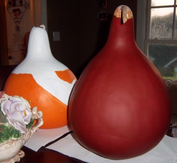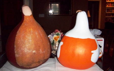 Some of you may remember a post in August I did called Out of Our Gourds for Gourds. In that post, for the first time, you met the newly formed, but not yet finished, pumpkin gourd on the left with both a front (above) view and a back (below) view.