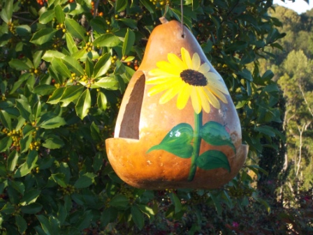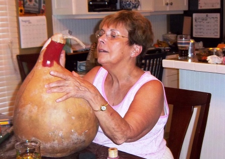 For those readers who are part of the close-knit gourd community which someday I hope to meet, here is a close-up of the gourd. I don’t know where it was originally purchased.
