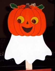 The pumpkin gourd came up for discussion because I first had finished a Halloween sign to put in the front of the house, and all of my orange paints were out. I am pretty pleased with it, even if I do say so myself.
