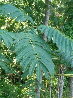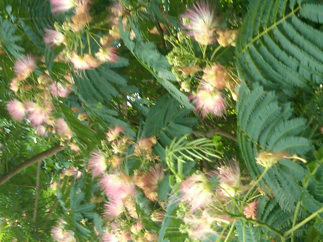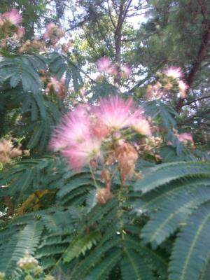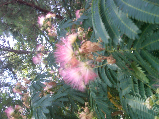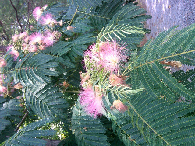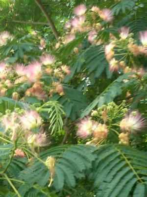 I am torn as to whether I like the mimosa tree, and its flowers. The foliage is delicate and fern like.
