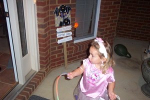 Kayla on the walkway in front of the parking lot