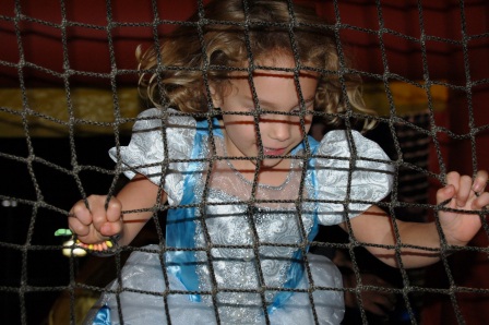 Carefully, she climbed down.